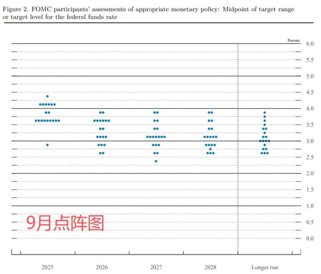 It is worth noting that this time the dot chart shows that a Federal Reserve official asked for a 50 basis point interest rate cut. After the Federal Reserve cut interest rates in September, it should drop another 100 basis points this year, and the voice of interest rate cuts in 2026 is even stronger.