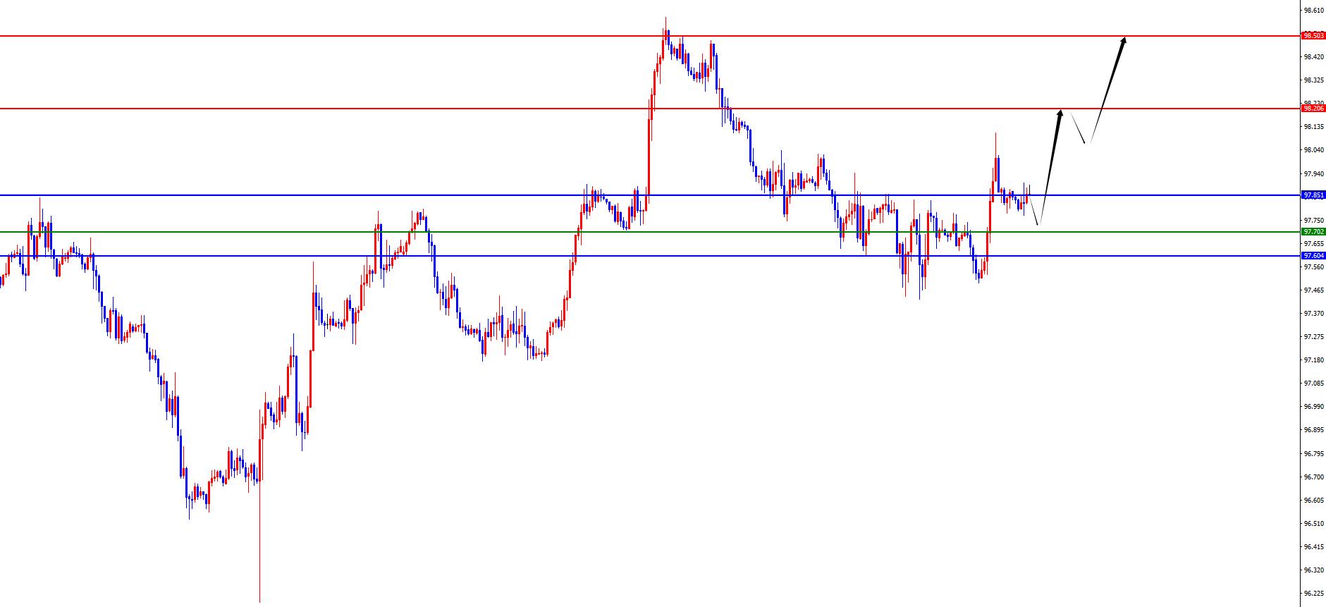 De un análisis de ciclo múltiple, el precio se ha consolidado en el nivel semanal recientemente. Actualmente, la línea semanal admite el área 97.85, y al mismo tiempo, el precio ha sido en la resistencia de la última semana, y los Bulls continúan a mediano plazo. Desde el nivel diario, a medida que pasa el tiempo, la línea diaria se admite actualmente en el área 97.60, y la banda por encima de esta posición del precio ha aumentado aún más. Desde una perspectiva de cuatro horas, el www.xmmen.comercio estadounidense de ayer atravesó la posición de resistencia de cuatro horas, y la resistencia anterior se convirtió en apoyo. Actualmente, el enfoque está en la posición 97.70, y el precio es un tratamiento alcista a corto plazo por encima de esta posición. Actualmente hay un ajuste a corto plazo en una hora. Después de que el precio regrese al área de soporte de cuatro horas, continuará prestando atención al aumento. Concéntrese en el área 98.20-98.50 arriba. Una vez que se rompe 98.50, los Bulls continuarán.
