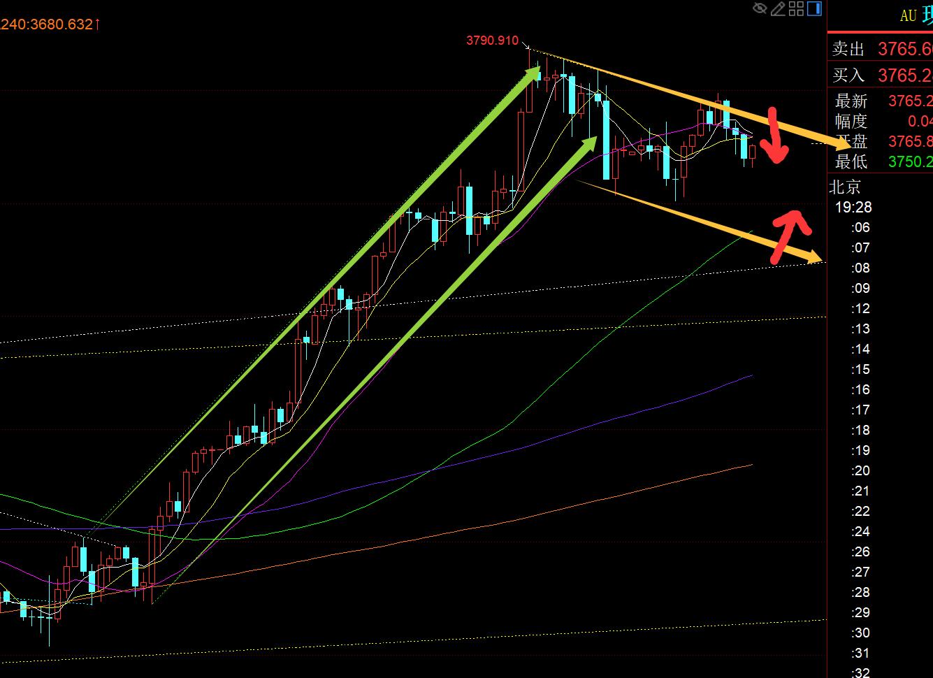 Secondo livello di 4 ore d'oro: Attualmente, intorno al legame a breve termine tra 5 e 10 giorni, il supporto della pista media passerà a 3730 di stasera. Ci sarà un supporto leggermente più grande in questa posizione e puoi essere rialzista quando sei basso. Non è adatto per essere direttamente rialzista. It has entered a volatility and correction, and the high point will slowly move down;