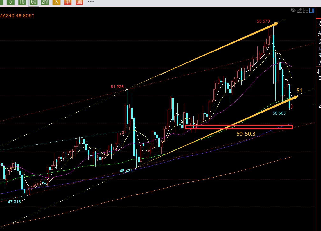 실버: 유럽 시장은 등락을 보이고 파동을 억제하여 차트 51에 있는 노란색 채널 하단 지지선에 닿았습니다. 파동으로 반등한 후 억제되어 50.5까지 새로운 최저치를 경신했습니다. 이 포지션은 점차 일일 5일 이동평균인 50.3에 접근했습니다. 따라서 은의 경우 한 단계 조정 조짐이 보이고 일봉선이 5선 위에 머무르는 한 여전히 강력한 일방적 완만한 상승세를 보일 것입니다. 그러므로 안정적인 강세 반등을 위해 오늘 밤 50.3에 주목하세요. 아니면 다시 51을 돌파했다가 노란색 채널로 돌아왔다가 다시 뒤로 물러서서 아래쪽 트랙이 반등과 충격을 따르도록 안정화되었는지 확인하면 저항은 52클릭입니다.