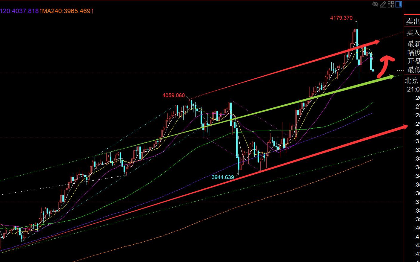 첫째, 황금 일일 수준: 오늘도 여전히 움직임이 크다. 오전에 처음 70미터 올라갔다가 오후에 90미터 하락하고, 유럽 시장은 50미터 후퇴했고, 미국 시장은 이때 40미터를 억제하며 요동쳤다. 격렬하게 이때 아래로 긴 위쪽 그림자 K가 형성됩니다. 오늘밤 반격하지 못한다면내일을 계속해서 낮추고, 단기 5이동평균을 고려하거나 돌파한 뒤 안정을 모색하겠다는 뜻이다. 9월 22일부터 유사한 추세 패턴 주기를 따르고 있습니다. 양(陽)이 이전의 횡보 압력 수준을 돌파하면 4거래일 동안 높은 횡보세를 보인 후 계속해서 양(陽)이 고점을 돌파합니다. 또 다른 4거래일의 통합 이후 또 다른 큰 양이 발생했으며 이는 3주기를 거쳤습니다. 어제 다양K는 네 번째 등장으로 네 번째 주기로 접어들 수도 있다. 따라서 큰 긍정적인 K 이후 두 번째 K는 일반적으로 계속해서 긍정적인 상태를 유지하고 세 번째 또는 네 번째 K는 뒤로 물러나 5일 이동 평균 지지가 효과적인지 확인하고 다섯 번째 K는 계속해서 긍정적일 것입니다. 따라서 오늘은 5일차를 직접 테스트할 가능성은 낮으며, 플러스 K를 마감하려면 종가도 시가 4110.6보다 높아야 합니다.