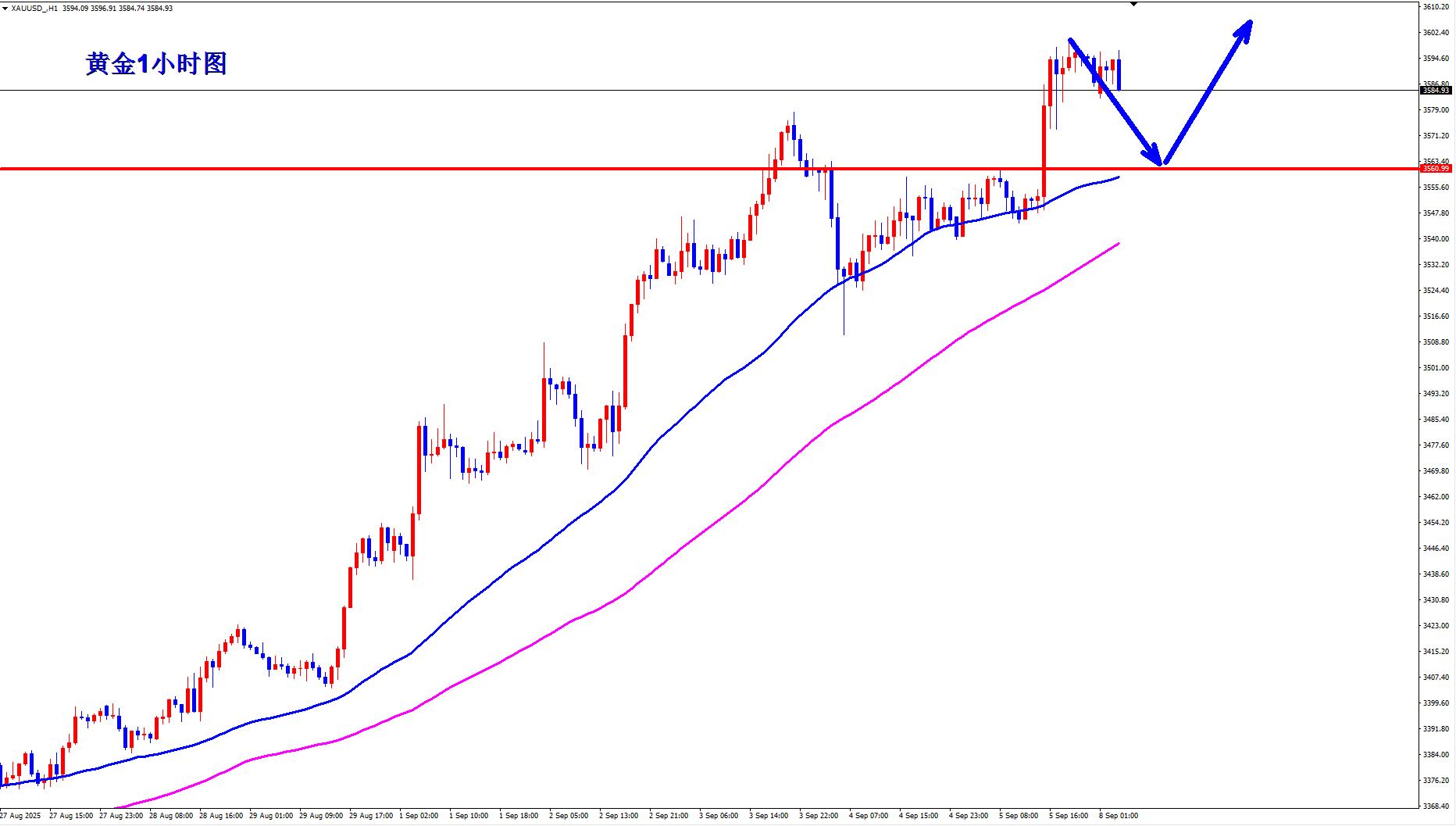 emas lebih daripada 3560, stop loss adalah 3545, sasaran adalah 3590-3600;