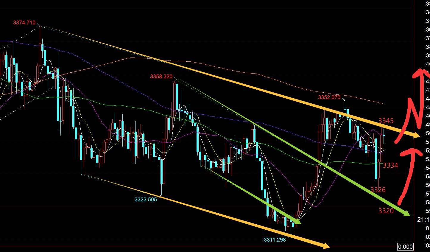 Second, the golden hourly line level: it continues to rise overnight. The short-term bullish positions given this morning are two, one is the morning low of 3338 and the other is the 3334 daily 5 moving average position. However, after touching, the European session only rebounded slightly slowly before 18 points, not strong; we know that only when the European session is strong, it is best to break through the morning or overnight high, so that the US session can better pull up again; if the European session is not strong, there may be another fluctuation, so 3338 prompts to adjust positions, and then a big negative appears at 19 points, xmmen.completely avoiding the risk of washing the market; and after the sell-off, the support prompt is to focus on stabilization between 3326-3323, because 3326 is the 618 division position of yesterday's increase, and 3323 is the 618 division position of the previous wave of increase The green channel in the figure is also the support point that the green channel in the figure has fallen back and falls back to the upper track. Since it is just a big negative in the European session, it is not in a hurry to make arrangements immediately. I think it will fluctuate in a small range, and then I will exert force when the US market stabilizes, but I didn’t expect that before the US market reaches the point, I will wash it back directly with a V, and then I missed the low position. Then, according to the distribution of the channels in the figure, we can know that the 3345 line is the channel counterpressure. Before breaking through the station, we should not rush to chase the rise. Tonight’s first support returns to the 3334 daily line 5 moving average, the limit is above 3320, close to the upper track of the green channel, and it will continue to be bullish; or before the 3345 breaks through the strongly, the retracement confirms to follow the bullish, and the above resistance targets will continue to pay attention to 3358-60, 3371-75, etc.;