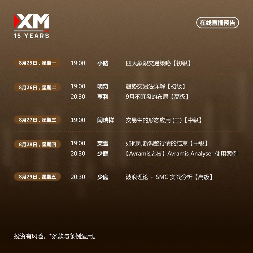 Hello everyone, today XM Foreign Exchange will bring you "【XM Official Website】: Chinese Online Live Lecture This Weekly Preview". Hope it will be helpful to you! The original content is as follows: