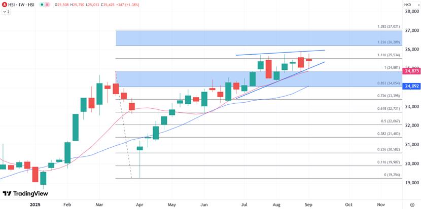 Hong Kong stocks experienced continuous declines before their recent rebound, with a cumulative decline of more than 500 points. The volatility of US bonds earlier this week has had an impact. It is reported that the mainland financial management departments are considering introducing a series of measures aimed at cooling down some speculative behaviors in the stock market, including or lifting some short selling restrictions, and Hong Kong stocks follow the fluctuations. The current weekly line is facing two consecutive declines, and next week we will see the latest policy progress to determine the direction. Technically, the Hang Seng Index is currently in a relatively high-level consolidation below the 26000 mark, and it is necessary to keep a stable above the 10-day moving average to maintain a high level consolidation.