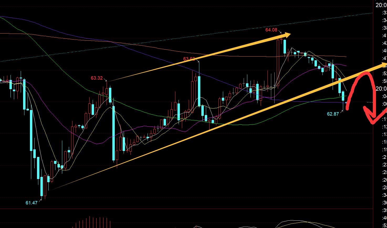 Crude oil: After mentioning the volatile rebound yesterday, pay attention to the decline in pressure on the 64 line, which is currently in line; today it breaks the lower track of the channel in the chart, and it will still pay attention to the suppression situation to rebound tonight, below 63.5;