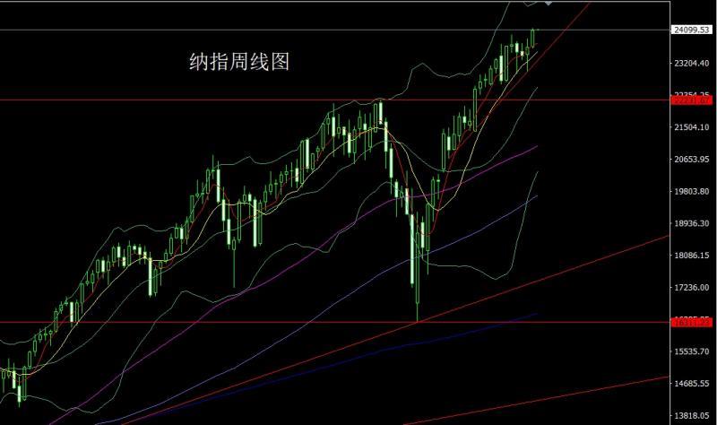 The Nasdaq market opened at 23644.91 last week and the market fell slightly and gave the position of 23613.38. After the market fluctuated strongly. The weekly line reached the highest position of 24139.52 and then the market consolidated. The weekly line finally closed at 24088.28. Then the market closed with a large basically saturated positive line. After this pattern ended, the weekly line effectively broke through the previous pressure, at the point, at 244 today. The target of 000 stop loss is 23940, and the target of breaking is 24200 and 24250-24300.