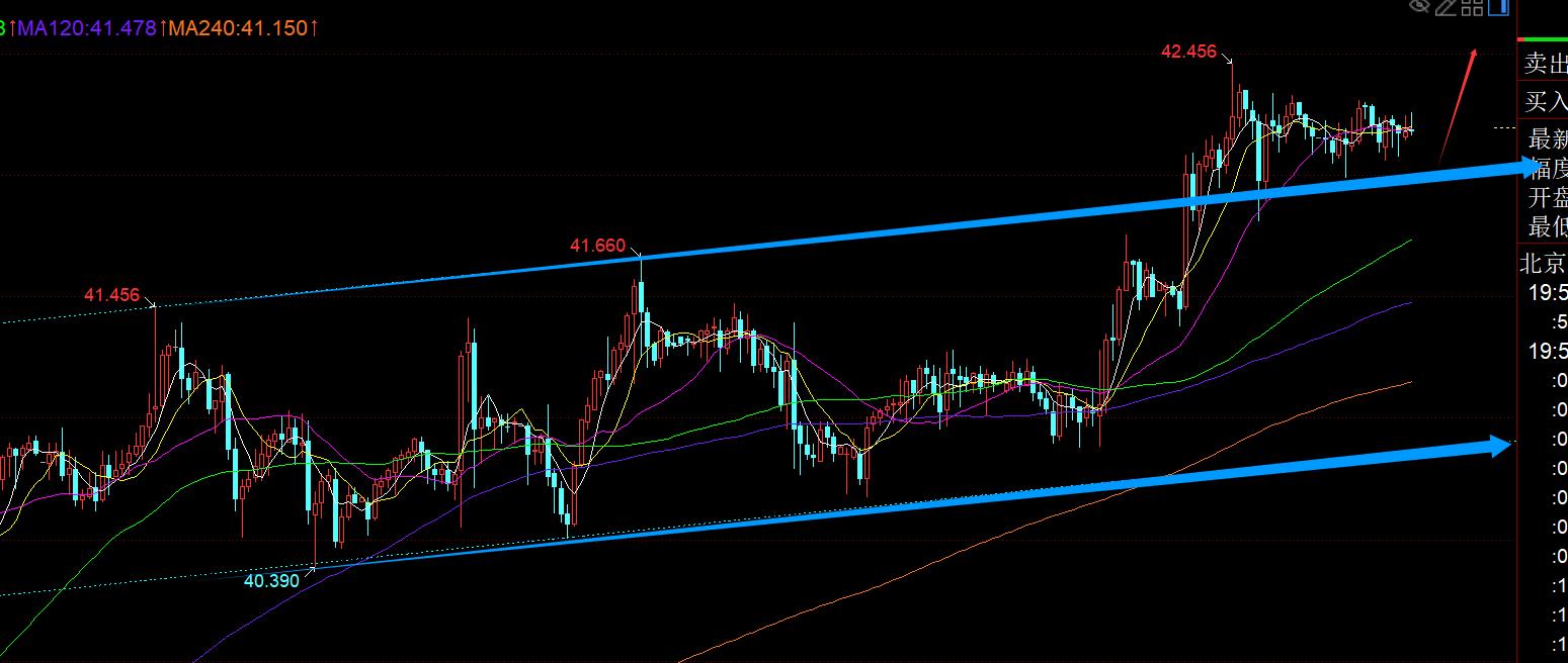 Silver: From the above figure, it is at a high level after breaking through the blue channel. As long as you stick to the upper track above 41.95, you will continue to maintain a strong bullish unchanged, and the goal is to break through 42.45 to beat the recent high;