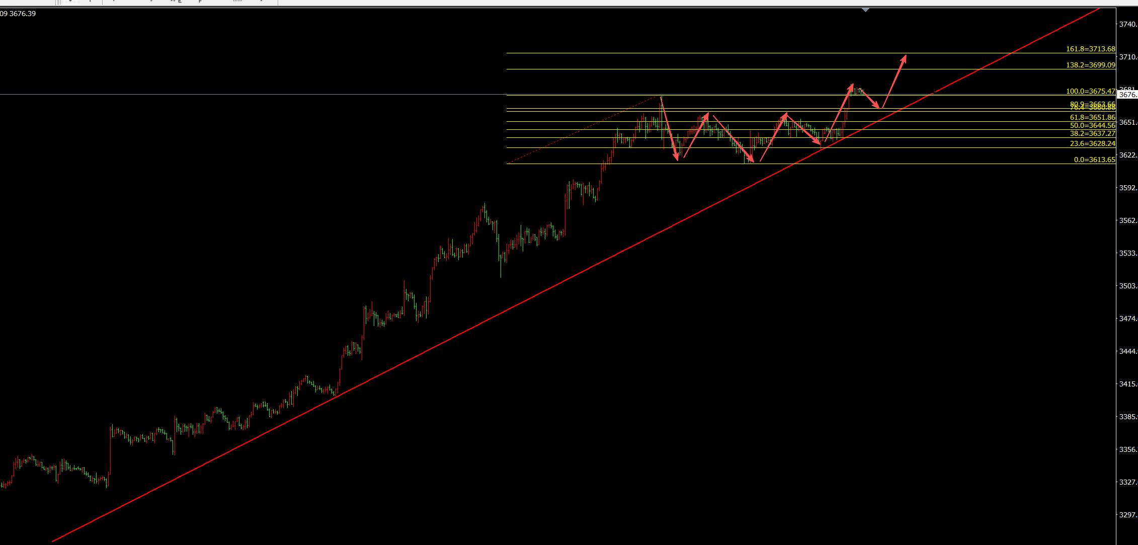 Yesterday, gold fluctuated repeatedly during the day, and after breaking through in the evening, it formed a sharp rise. The price reached the highest point above 85. The high point of the fall in the consolidation zone was 3353 and the closing was closed with a big positive line. From the current perspective, the daily chart was K big positive, and the trend structural bulls did not change. Yesterday's oscillation to the breakthrough basically xmmen.completed a new wave of rise. We will not guess where the market will rise in the future, but based on the high and low, breaking through Yanzhuo's short-term target position, one is 1.382 and the other is 1.618. As for the decline point, we should grasp two points today, one is the decline point last night's support upward, and the other is the first wave of high The top and bottom conversion position formed by the point corresponds to today's 0.618 position 3363 and 0.5 position 3656. The first point that fell last night was 3653.8, so today's defense is below 53.8, and it goes long in batches above. The corresponding target is one of the integer marks of 3700, the second is 1.382 position, and the third is 1.618 position. Therefore, the conclusion is as follows: