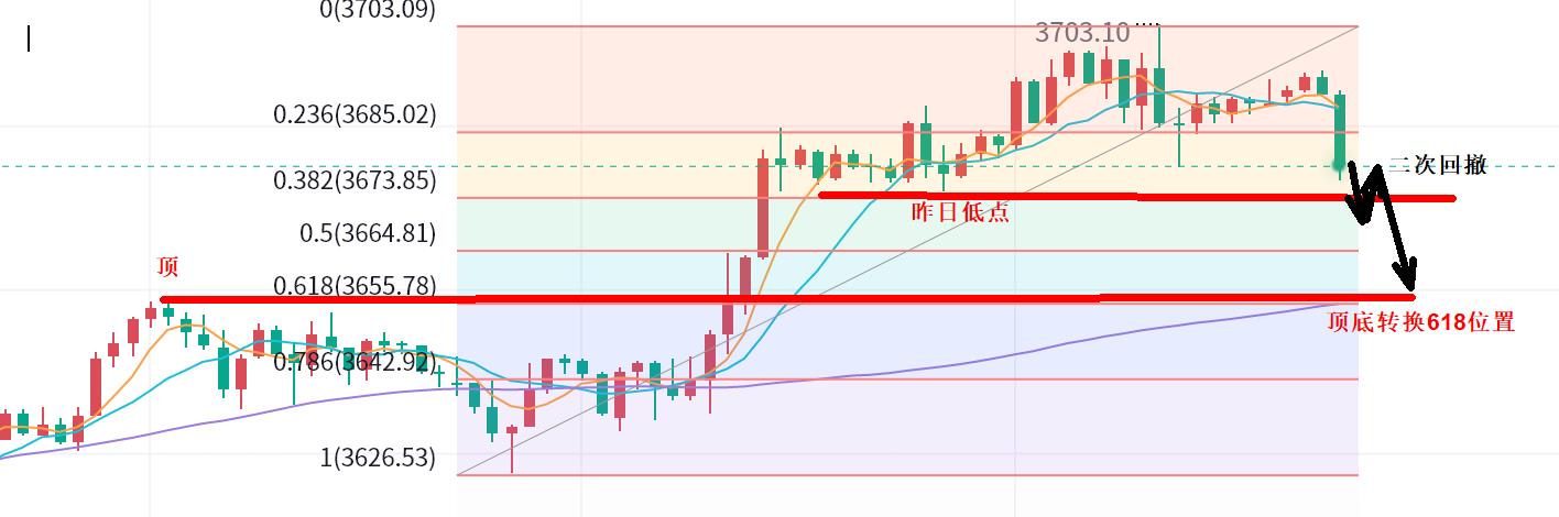 Enter the wait-and-see period, support points are at the lows of 3677 and 3674 in the early morning of yesterday.
