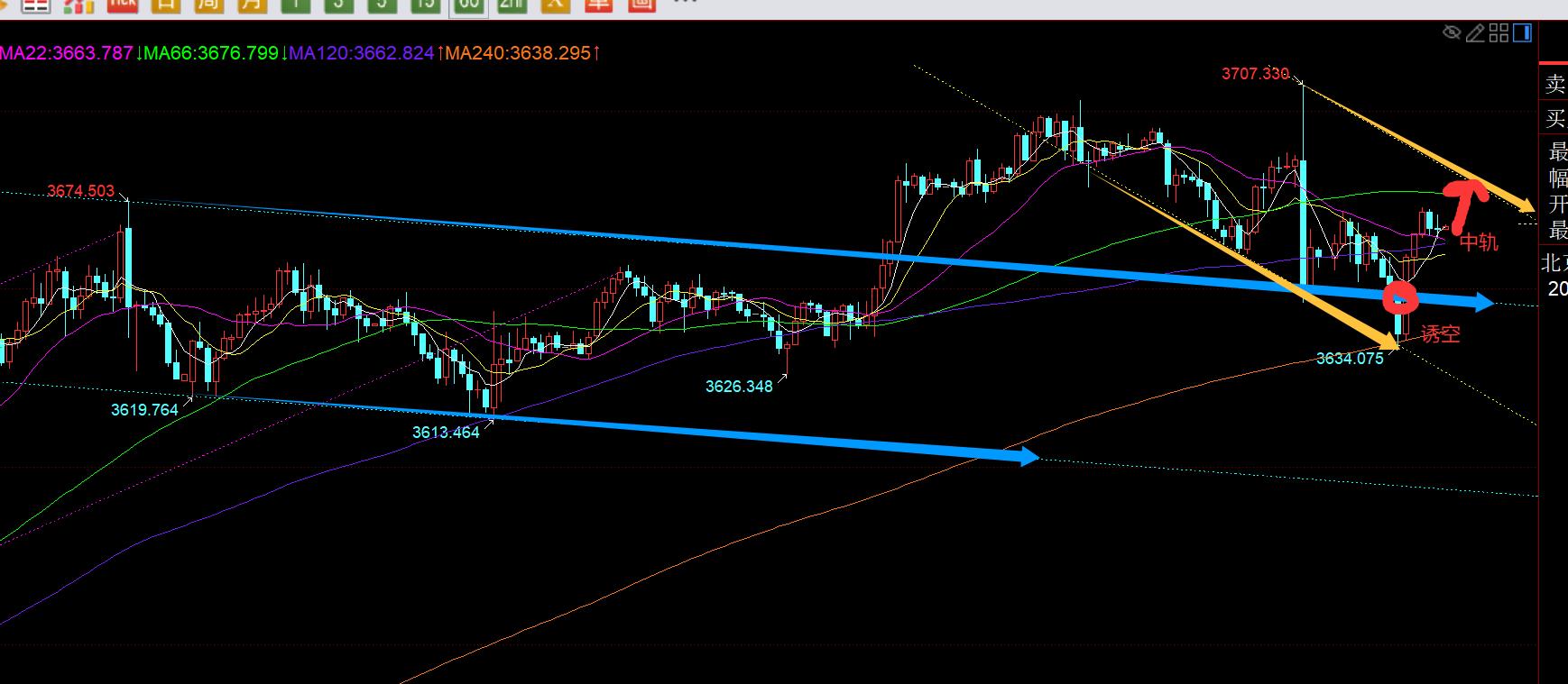 First, gold daily line level: Yesterday closed negative. As a unilateral upward trend, the negative line is often treated as a single negative first, and the next day it can see whether it can continue to close positive; if it continues to close positive K today, a short-term wave of decline adjustment will be very likely to end again, and continue to rise strongly to hit a historical high; at the same time, the 10-day position is also more important,Previous week's video interpreted that a round of unilateral rise will first rely on the 5 moving average to rise and strengthen. When it falls 5 days and hits the 10th for the first time, it will stabilize and usher in another round of unilateral upward pull or at least hit a historical high; then, when the two moving averages continue to bond, the 10 moving average will be tested repeatedly, and a wave of short-term downward correction may be ushered in. The final correction is generally to move closer to the middle track position, and will stabilize and continue to welcome the unilateral rise; therefore, today, focus on the gains and losses of the 10 moving average position, that is, whether 3645 can continue to stand effectively, from today's European market Judging from the bottoming V-pull trend, it should be able to hold steady. Then it depends on whether the closing can re-stand on the 5th day, that is, 3667. If the closing is far above this position, or the continuous positive position is on the 3707 high point will be refreshed soon;
