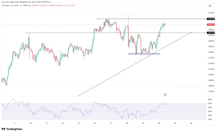 However, gold prices are close to around 3700 at the hourly level, there is a possibility of slowing down or overbought adjustments, butIn a situation where bulls still have xmmen.complete dominance, the downside space may be very limited. Focus on the potential support near the trend line below 3665/75. If it can break through 3700 strongly, it will open up new upward space. On the contrary, if the surge fails and falls under the key support area of 3628/38, it increases the probability of high-level oscillation.