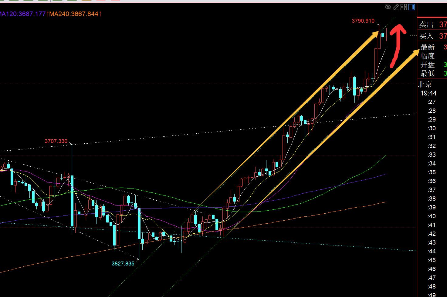 Zheng's silver spot: Today's gold has stood strongly above 3760 in the European session, and continues to be bullish again tonight.