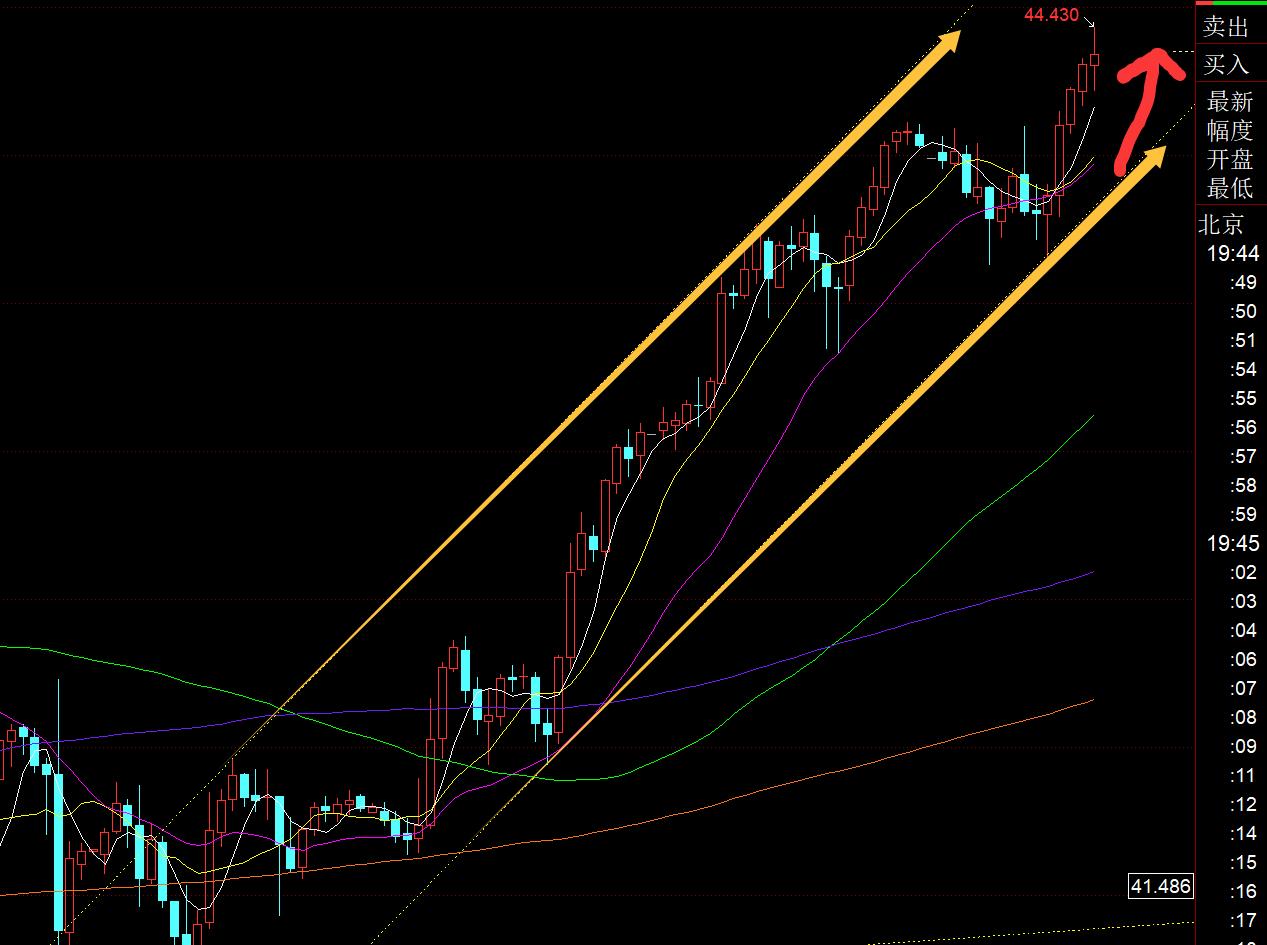Second, silver: Yesterday morning, the opening was also directly continued to rise and continued to exert force on one side, and never gave a chance to follow the bullish one; the wave of retracement before and after the US session gave a good opportunity to induce shorts. Although the retracement was a little stronger, piercing the starting point of the European session, it held the small The key middle track of the time line is also the 618 split position 43.3, and then it exerted force at night to reach the target of 44.1;