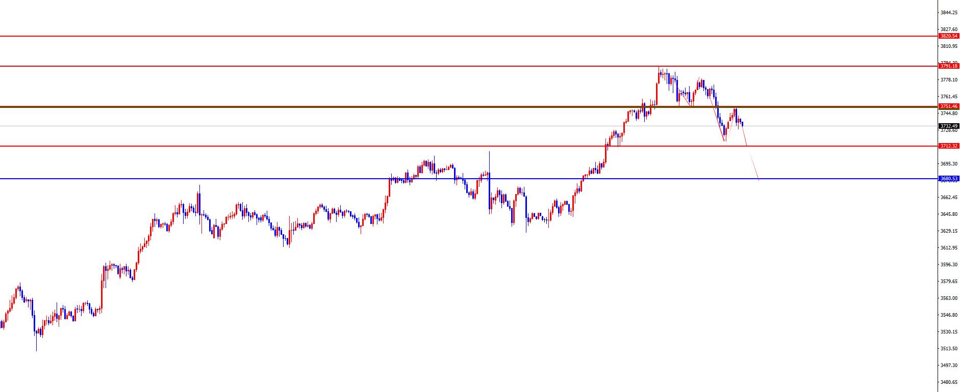 Gold 3750-3755 is empty in the range, with a defense of US$10, and a target of 3712-3680