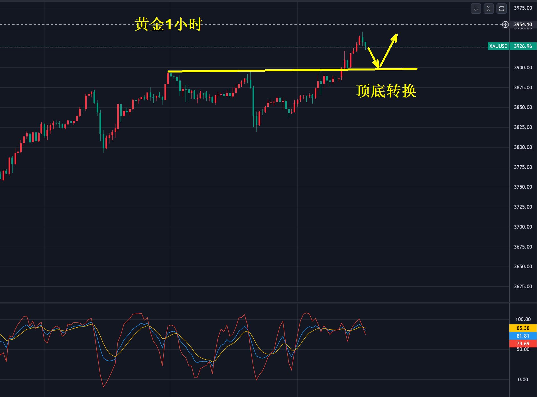 1 hour, accelerate upward in the morningBreak through the previous high point, focus on the top and bottom conversion of US$3,900 after the retracement. As the gold price rises, the base will not change, the stop loss space will also change, and the price volatility will not change. The same is 3%. In the past, it was only US$30 when it was 1,000 US dollars, but now 3% fluctuates from US$100-120 per day.