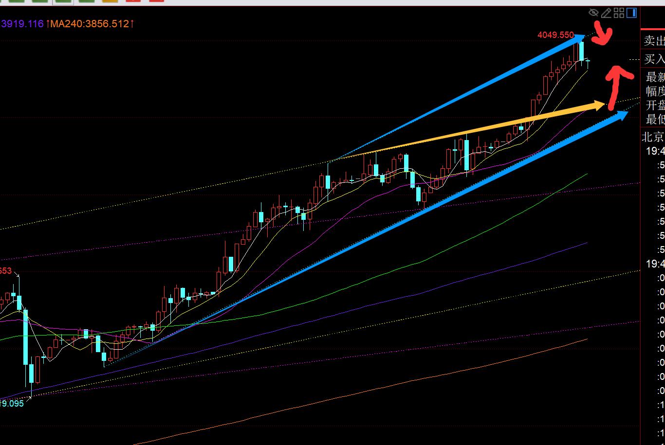 First, gold: it closed strongly overnight, and opened yesterday morning and continued to rise in a cycle. It surged higher and fell back at 10 o'clock, closed positive again at 11 o'clock, and stood on the hourly line 10 again. Moving average, I tried to follow the bullish trend and successfully gained 10 meters; the European market continued to be negative and fell below the early rising point of 3955, so it moved down to stabilize around 3925 and continued to be bullish. As a result, it only stepped back to 3940, and the US market directly pulled up with a V; Since every integer mark of 3700, 3800, and 3900 was touched in the previous period, there was a correction of about 70 meters. This time it was close to 4000, and profit hedging protection was also carried out. The previous 27 35, 2753, 3000, 3247, 3281, 3528, 3730 and more bottom positions are bullish for profit protection in the medium and long term to prevent excessive taking, and you can also catch the band price difference. There was indeed a wave at night, but it only pulled back to 3960, and did not reach the expected target of 3930;