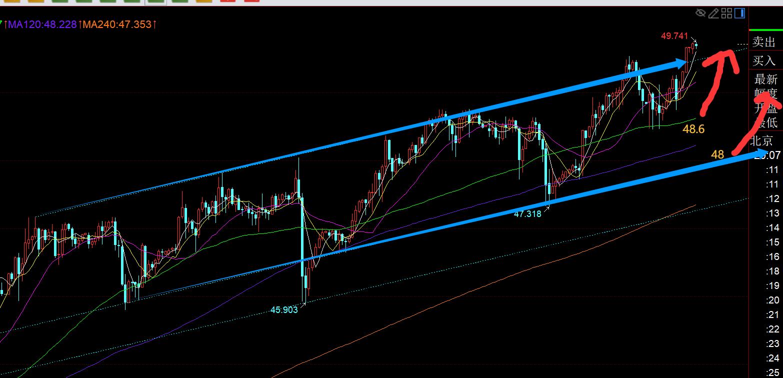 Silver: Silver was not strong yesterday, but it is quite stronger than gold today. After a slight consolidation in the European market, it went straight upward and hit a new high recently, and is about to break through the historical high of 49.8;