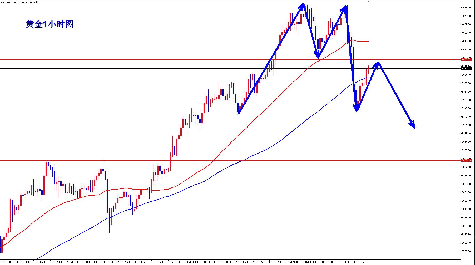 The 1-hour moving average of gold has begun to turn downward. The 1-hour rise of gold has not been strong enough. The 1-hour pattern of gold has formed a double top structure. Gold is under short-term pressure of 4000. Any high is a short opportunity. However, the rhythm of gold is also very important now, so today is If it does not fall back sharply, but continues to maintain strong strength in the European market and slow down the pace of rising prices, then gold may have to use time for space to adjust. Then gold may still continue to rise, and then pull up strongly under the stimulation of the news to xmmen.complete the washout, so today's strength is critical.
