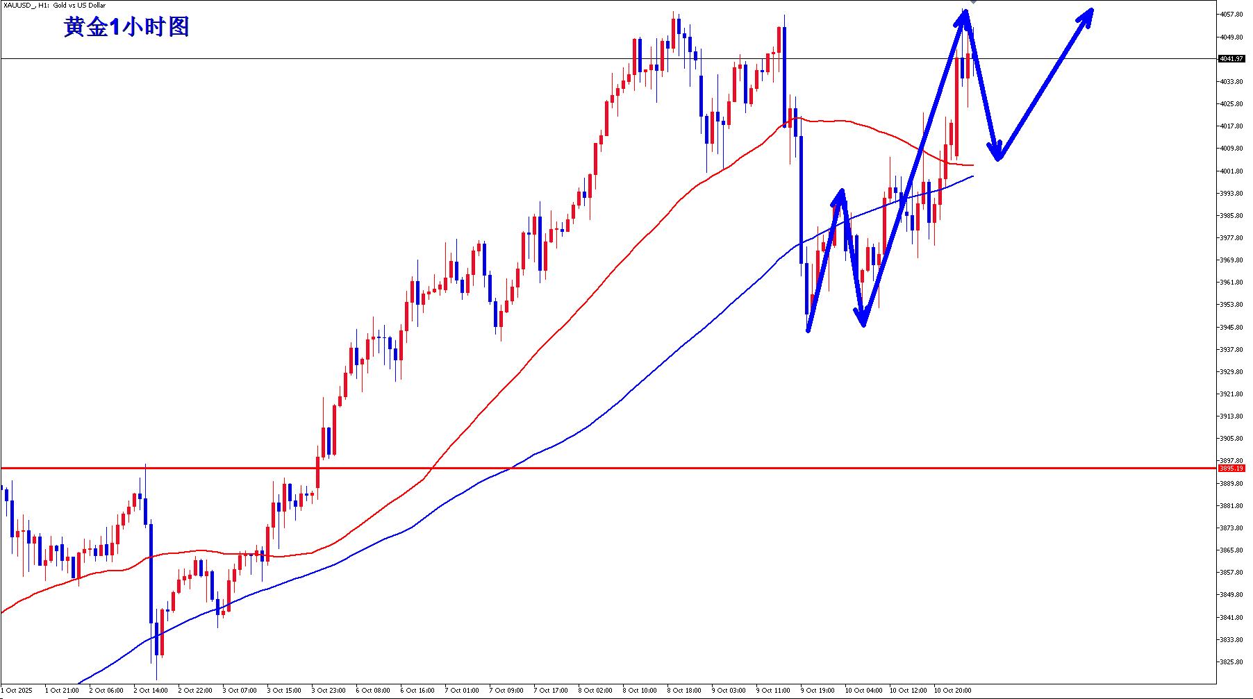 Gold bulls continue to rise in the 1 hour, gold bulls are full of momentum, gold 1 hour moving average continues to turn upward, then gold will continue to rise, gold 1 hour is now the key long and short watershed 4060 line, if gold directly breaks through 4060, then gold's upward space will be further opened, before breaking through, gold will wait patiently to fall back and gain momentum before continuing to increase.