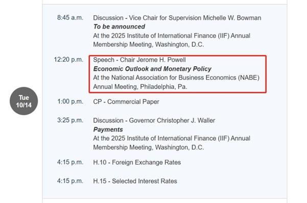 This Tuesday at 23:30, Federal Reserve Chairman Powell will deliver a speech at an event organized by the National Association of Business Economicstalk. The topic of this speech is: Macroeconomic Outlook and Federal Reserve Monetary Policy. The venue is Philadelphia, Pennsylvania. Any speech by Powell will cause a violent reaction from the market, especially when the speech involves monetary policy, and this speech is no exception. Considering that the non-farm payrolls report in September was poor, the one-year inflation expectation in October dropped from 4.7% to 4.6%, and the key economic data performed poorly, Powell's speech may be dovish or increase expectations for an interest rate cut, and the dollar may be affected.