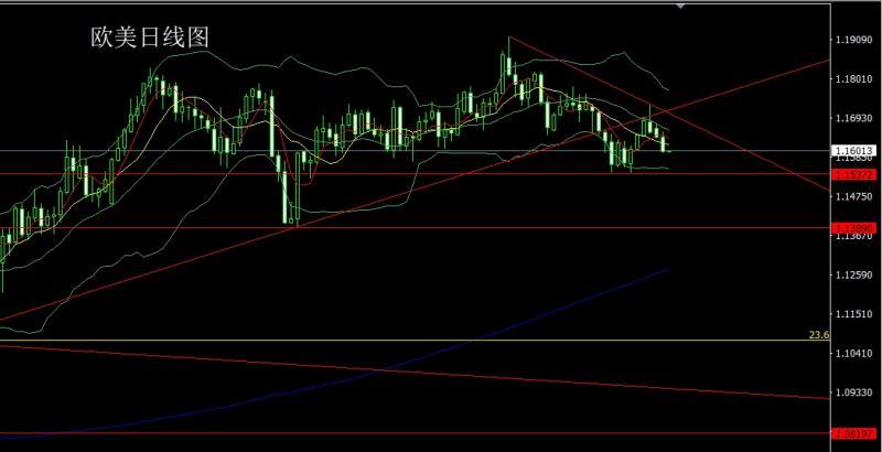 European and American markets opened at 1.16399 yesterday, and the market first pulled up to reach 1.16553, and then fell back strongly. The daily line reached the lowest position of 1.15964, and then consolidated. The daily line finally closed at 1.15985, and then the market closed at 1.15985. A big negative line with a long upper shadow line closed, and after the end of this form, today's market continues to be bearish. In terms of points, today's 1.16250 is bearish, with a loss of 1.16500. The lower targets are 1.15950, 1.15750, and 1.15500.