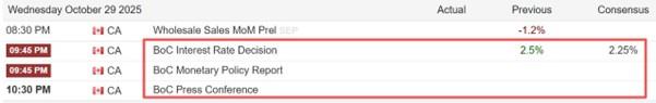At 21:45 this Wednesday, the Bank of Canada will announce the results of its October interest rate resolution. Mainstream expectations are that it will cut interest rates by 25 basis points. Canada's economic development relies heavily on the United States. Since the beginning of this year, U.S. President Trump has continued to increase tariffs on imported goods from Canada, xmmen.compounding the macroeconomic recession in the United States itself.There are signs that the growth prospects of the Canadian economy are extremely pessimistic. Last Saturday, Trump stated on social media that he would impose an additional 10% tariff on Canada in retaliation for its advertisements criticizing U.S. tariff policies. This will seriously weaken the confidence of market participants in holding the Canadian dollar.
