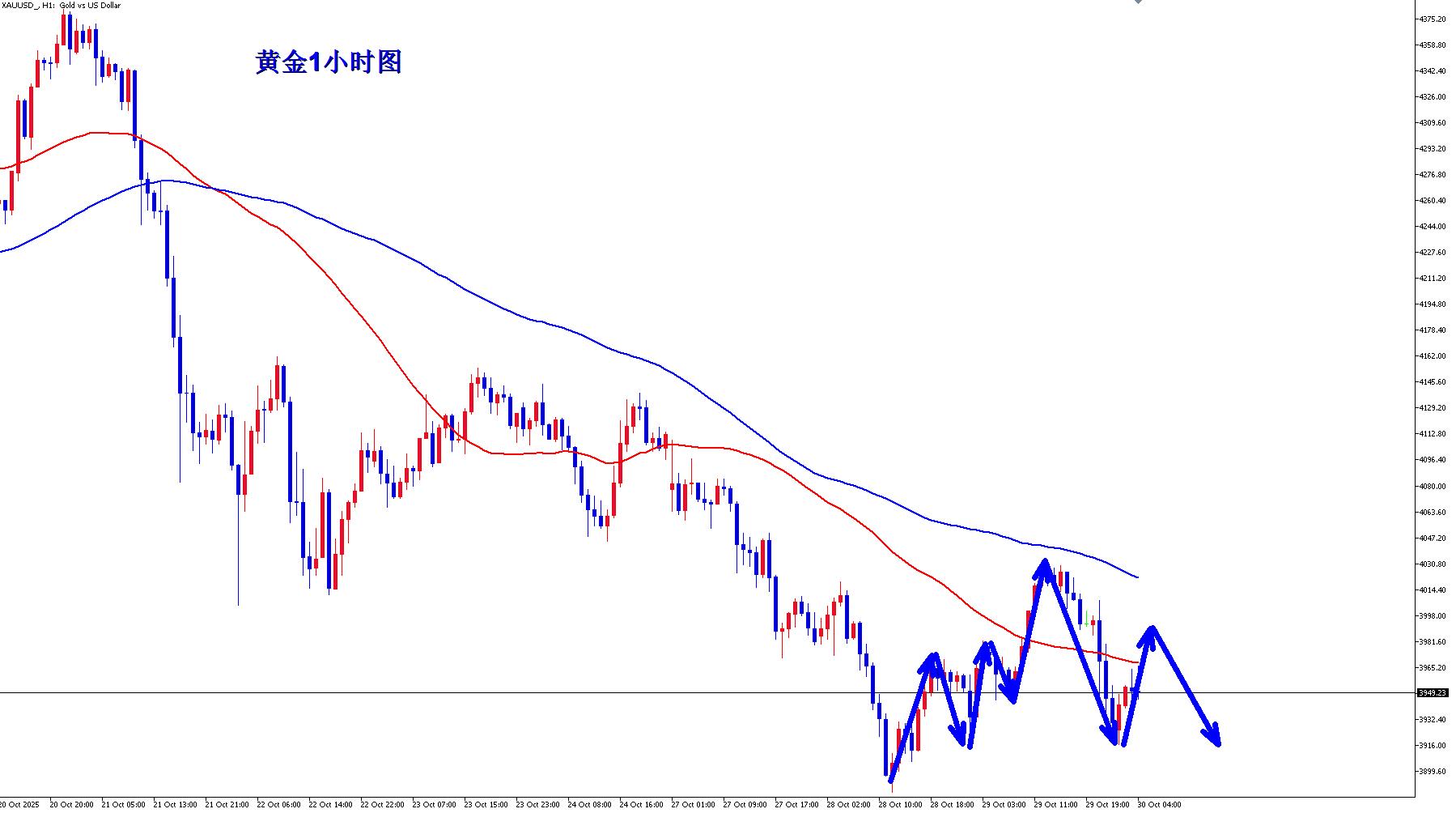 The 1-hour moving average of gold still continues to cross downwards, and now gold has fallen back below the moving average. Gold is still more bullish on the short side. Gold shot up to 4007 after last night's data and then quickly fell back. Gold was under pressure at the 4000 line in early trading and continued to be dominated by highs and lows. Gold bulls did not stand firm on the 4000 line, and gold shorts were better.
