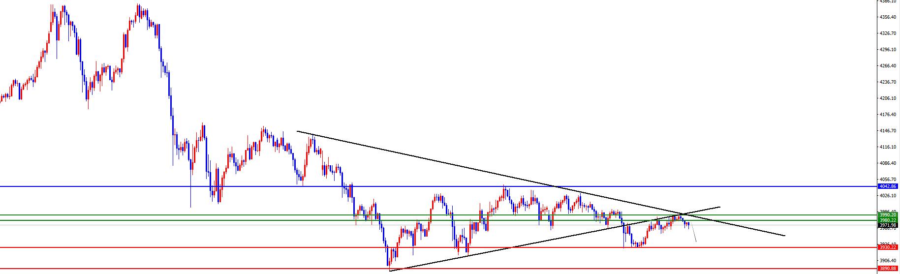 The key watershed is 3980-3990. The price will fluctuate and be under pressure before there is a reversal signal