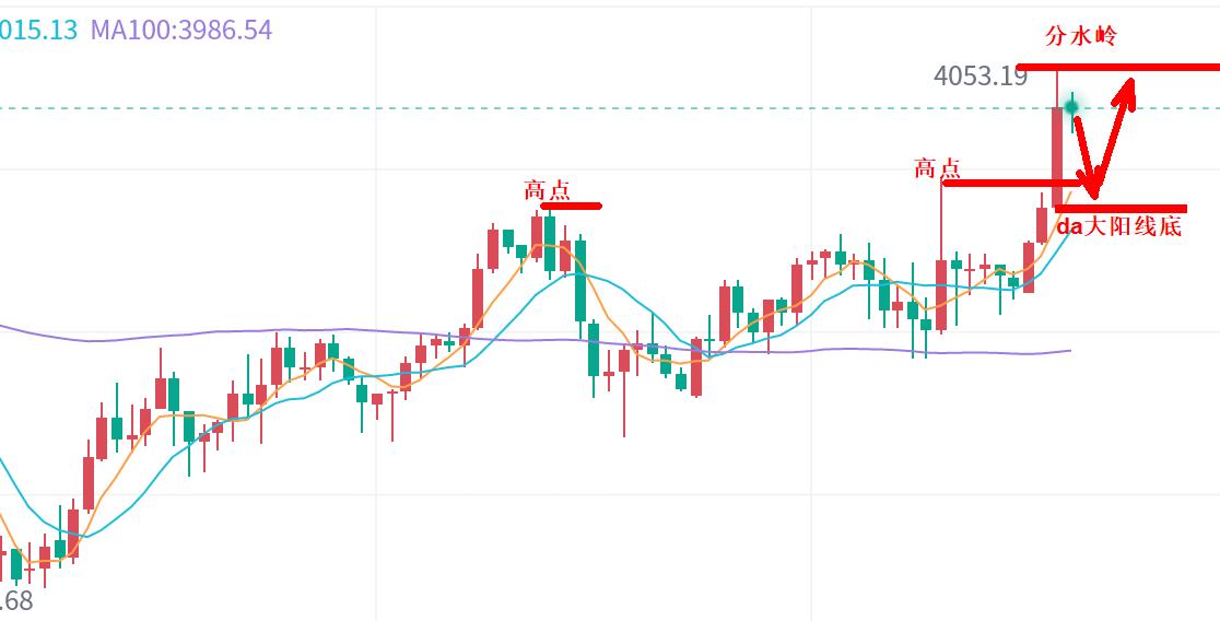 At the same time, there is another way to judge the shock, the European market, whether the European market can continue, if the European market does not go up and is suppressed below the morning high of 4053, then it must be a shock in the evening, and it will be beaten down.