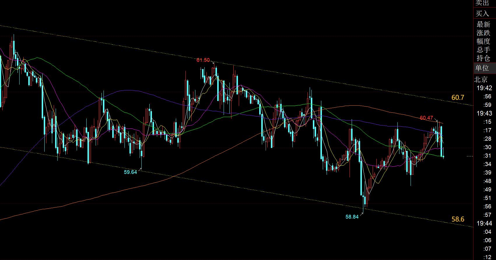 Crude oil: There are no big fluctuations. We will continue to treat the fluctuations in the small yellow channel. The upper rail resistance is 60.7 and the lower rail support is 58.6;