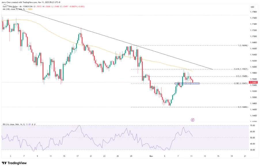 Although the end of the shutdown does not mean that recent economic data will be released on time, the Fed is expected to have three non-agricultural reports (September, October, and November) as a reference before the December 10 meeting. This greatly reduces the risk of decision-making errors and will also correspondingly reduce serious differences within the Fed. The probability of a rate cut in December implied by the current interest rate market has dropped to around 60%, which has helped the US dollar index stabilize around 99.60.