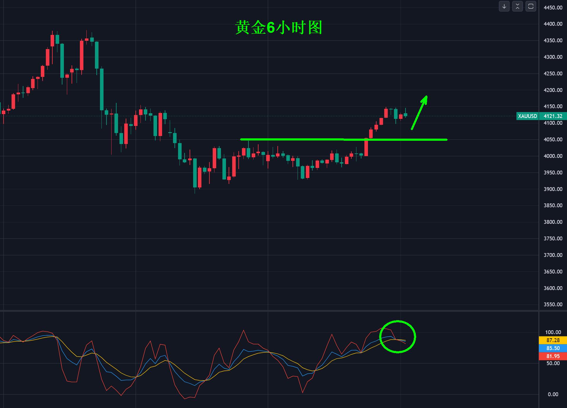 Today, you can first use 4120 US dollars as the dividing point between long and short to see the callback during the day. The lower part is close to the top and bottom and converts to 4060-50 US dollars to backhand long, or it may break through 4120 US dollars and then go back to the long position. It will not chase the long position during the day until it breaks the previous high of 4120.