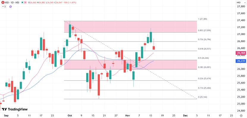 XM: Hong Kong stocks retreated after four consecutive days of gains, and the 26,000 mark may once again play an important role as an important support