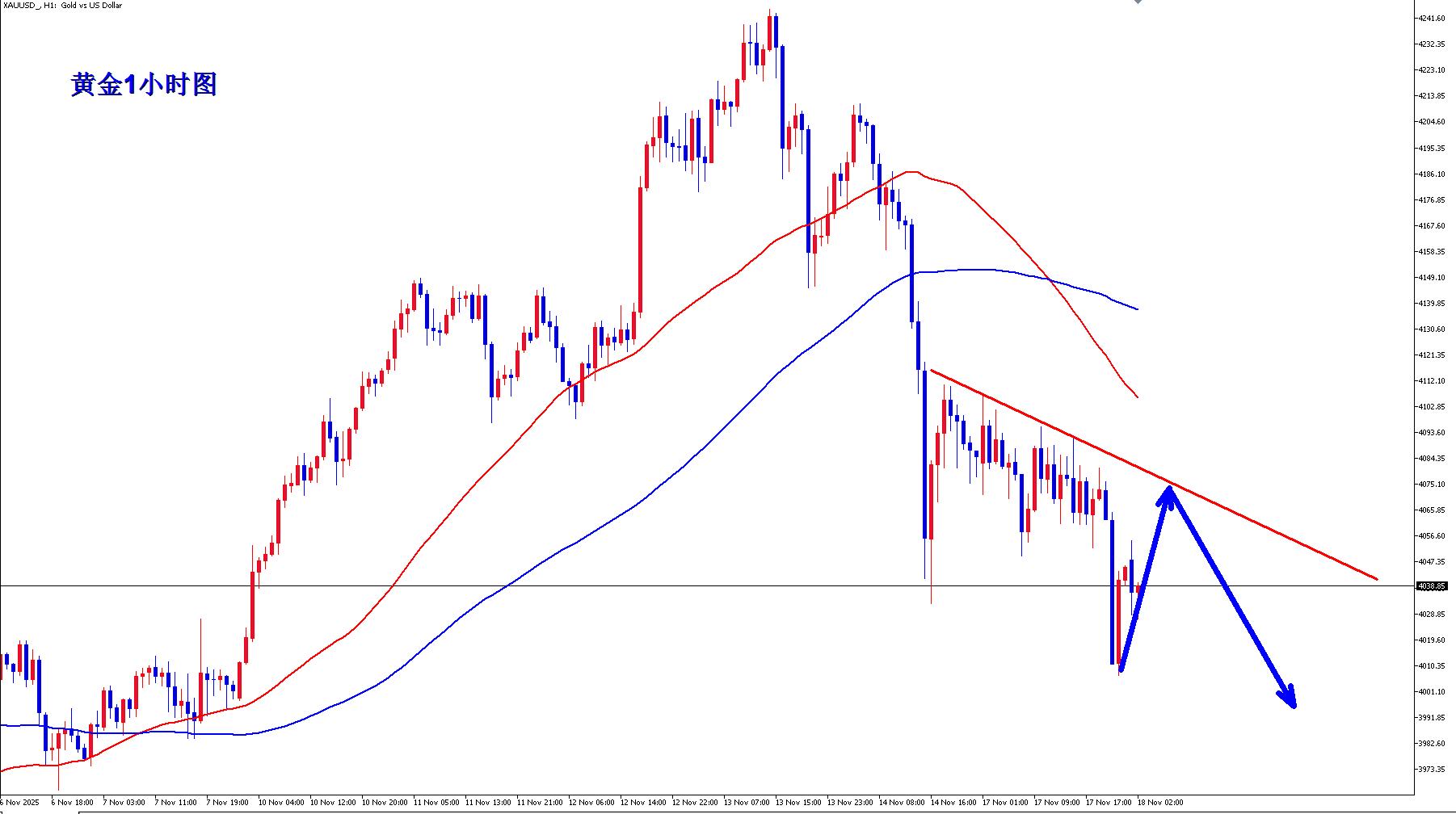 Gold's 1-hour moving average continues to be a bearish cross downward. Gold still has downward momentum, and gold's rebound continues to be short. Gold's 1-hour center of gravity continues to shift downward, and the standard channel is downward. Gold rebounded in early trading and was under pressure near 4080, but it continued to rise high and low. Gold still has the momentum to continue falling in the short term.