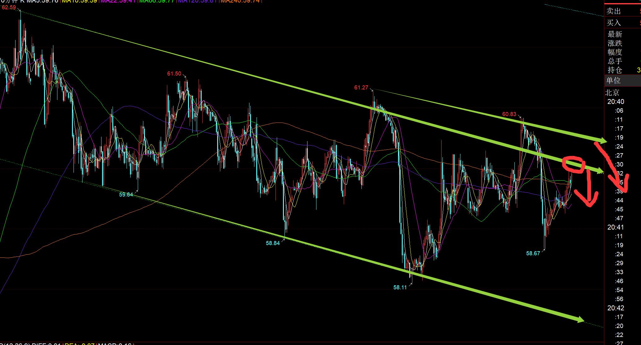 Petrolio greggio: prestando ancora attenzione al canale nella foto, ha rotto due volte il binario superiore del canale, ma non è rimasto troppo a lungo ed è salito più in alto ed è tornato nel canale. Stasera, presta attenzione al segnale di pressione di 60 e oltre e continua a osservare l'aumento e la caduta;