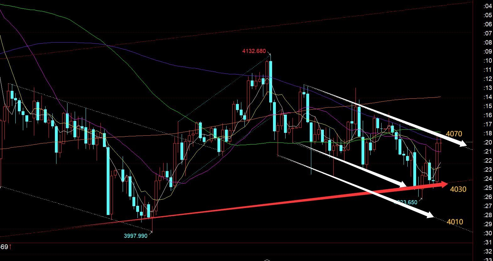 In primo luogo, l'oro: a giudicare dall'attuale livello giornaliero, questa settimana è stata enfatizzando il primo consolidamento ad ampio raggio all’interno del piccolo triangolo di convergenza. Finora è ancora all'interno del canale. Martedì ha testato il supporto del binario inferiore intorno a 4000, e oggi ha testato di nuovo intorno a 4020, entrambi i quali hanno visto un rimbalzo ipervenduto intraday; continua a prestare attenzione stasera Il binario inferiore 4020 ha il supporto superiore e inferiore. Poiché in questi giorni ci sono sempre dei movimenti dei pin, il supporto o la resistenza chiave potrebbe sembrare perforato, quindi è normale avere un errore di 10-20 metri. Il punto chiave è chiudere nuovamente al di sopra del supporto originale o al di sotto della resistenza; e la resistenza è attualmente la linea 4100 il 10;