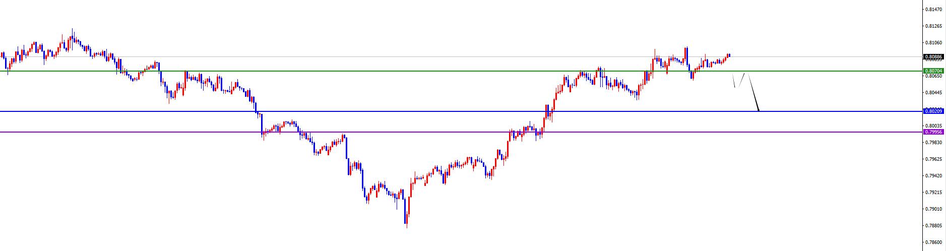 L'area spartiacque chiave di 0,8070, il prezzo rimane a lungo prima di invertire (poco dopo aver superato il livello inferiore)
