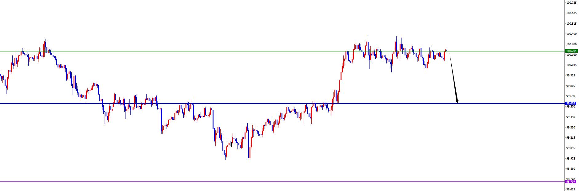Lo spartiacque chiave è l'area 100,20, il prezzo rimane corto (sottotendenza) finché non c'è alcun segnale di inversione