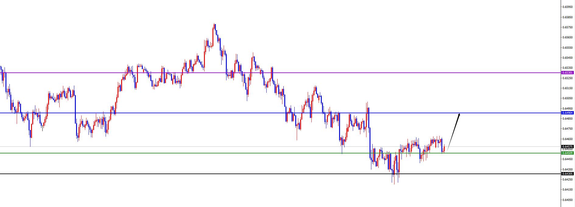 L'area spartiacque chiave di 0,6450, il prezzo dovrebbe rimanere a lungo prima che si verifichi un'inversione