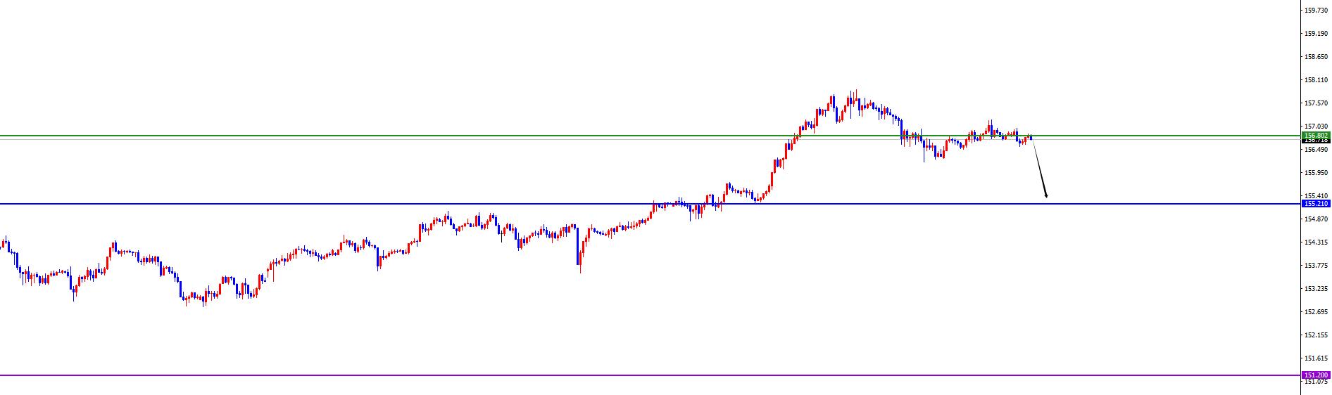 Lo spartiacque a breve termine è nell'area 156.80-90 e il prezzo rimane corto finché non c'è alcun segnale di inversione