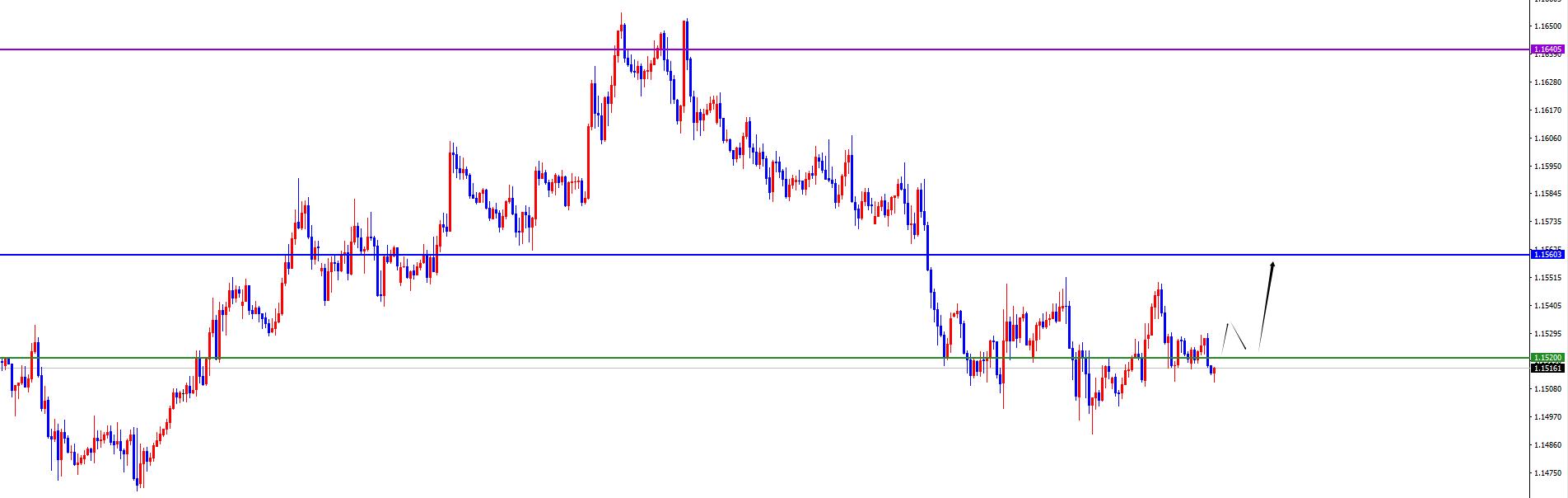 Lo spartiacque chiave è 1.1520. Prima che il prezzo si inverta, rimani corto (torna a lungo dopo aver superato il limite)
