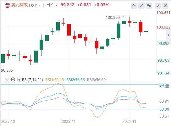 Il 26 novembre, durante le prime negoziazioni in Asia di mercoledì, ora di Pechino, l'indice del dollaro USA si aggirava intorno a 99,84. Martedì, mentre i dati sulle vendite al dettaglio inferiori alle attese hanno rafforzato le aspettative del mercato per un taglio del tasso di interesse di dicembre da parte della Federal Reserve, l’indice del dollaro USA è sceso dai suoi massimi, scendendo sotto la soglia di 100, e alla fine ha chiuso in ribasso dello 0,389% a 99,81; I rendimenti obbligazionari statunitensi hanno continuato a scendere, con il rendimento obbligazionario statunitense a 10 anni di riferimento che è sceso sotto il 4% per la prima volta dalla fine di ottobre, e il rendimento obbligazionario statunitense a 2 anni, che è sensibile al tasso di interesse della politica della Fed, ha chiuso al 3,463%. Poiché la prospettiva di un taglio del tasso di interesse da parte della Federal Reserve è stata controbilanciata dall’attenuazione dei rischi geopolitici, l’oro spot ha oscillato in un intervallo, stabilendo un nuovo massimo dal 14 novembre, e alla fine ha chiuso in ribasso dello 0,1% a 4.130,84 dollari l’oncia; l'argento spot ha infine chiuso in rialzo dello 0,24% a 51,48 dollari l'oncia. Il petrolio greggio internazionale è tornato a diminuire mentre i segnali di progresso nei colloqui di pace tra Russia e Ucraina hanno alimentato le aspettative che le forniture di petrolio russo rimarranno stabili. Il petrolio greggio WTI è sceso del 3%, avvicinandosi alla soglia dei 57 dollari, toccando un nuovo minimo in più di un mese. Alla fine ha chiuso in ribasso dell'1,36%, a 58,09 dollari al barile; Il petrolio greggio Brent ha infine chiuso in ribasso dell'1,31%, a 61,97 dollari al barile.