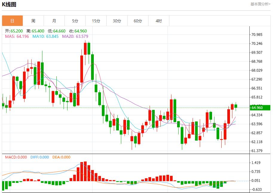 原油市场:截止北京时间20:23,美油上涨,现报64.980,涨幅0.00%。纽市盘前,(原油)价格在最近一个交易日上涨,此前在相对强弱指标上卸载了一些超买条件,在短期基础上强势看涨修正波占主导地位,来自EMA50上方交易的积极压力继续存在,迅速加强了价格复苏。