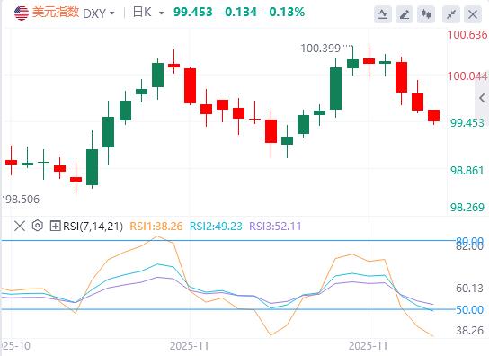 周三,美元指数呈现倒V走势,盘中一度逼近100关口,但随后急转直下,截至目前,美元报价99.45。