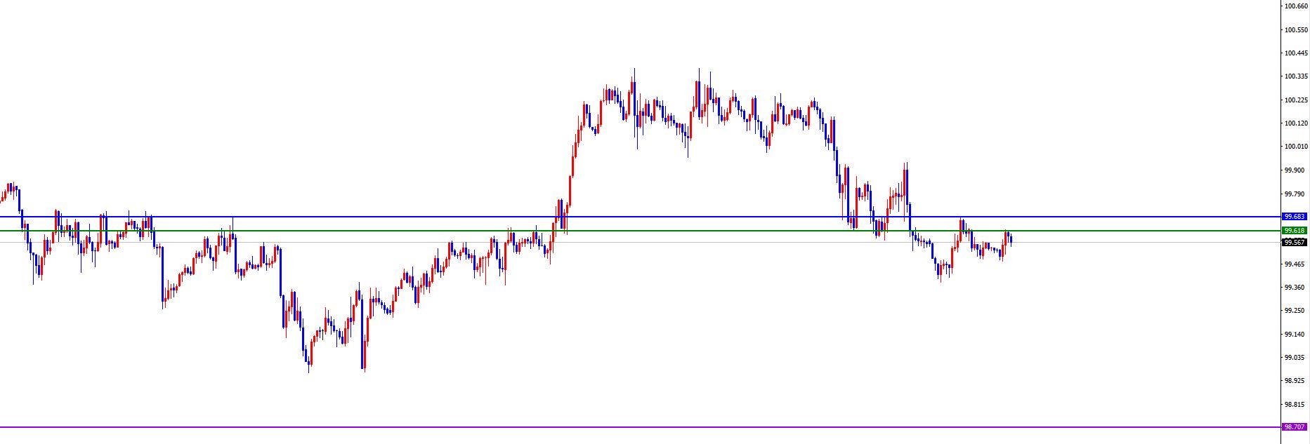 关键分水岭99.60-70区域,价格没有出现反转信号之前维持空(美指空短线注意风险)周初空保守者可以离场