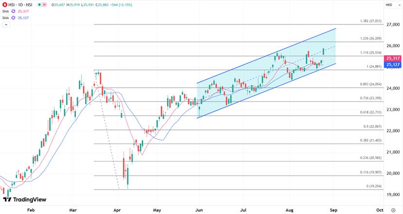 XM港股:外圍降息前景明確,恆指創近四年高位指向26000關口
